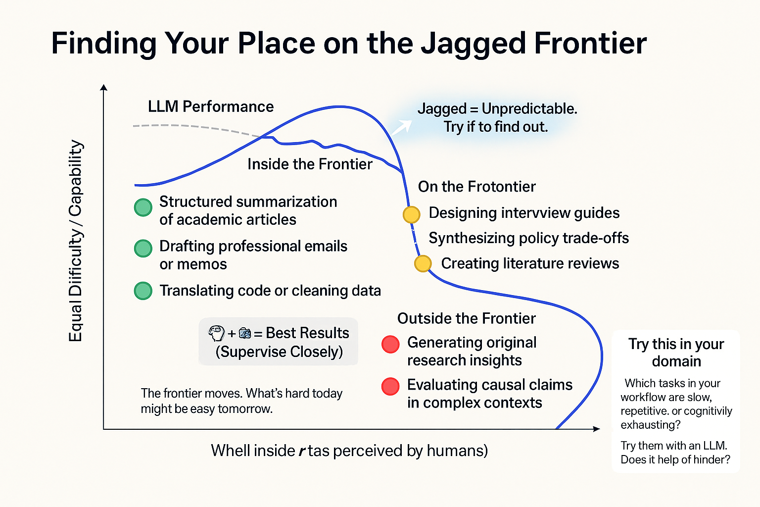 ✓ Mental model (jagged frontier)